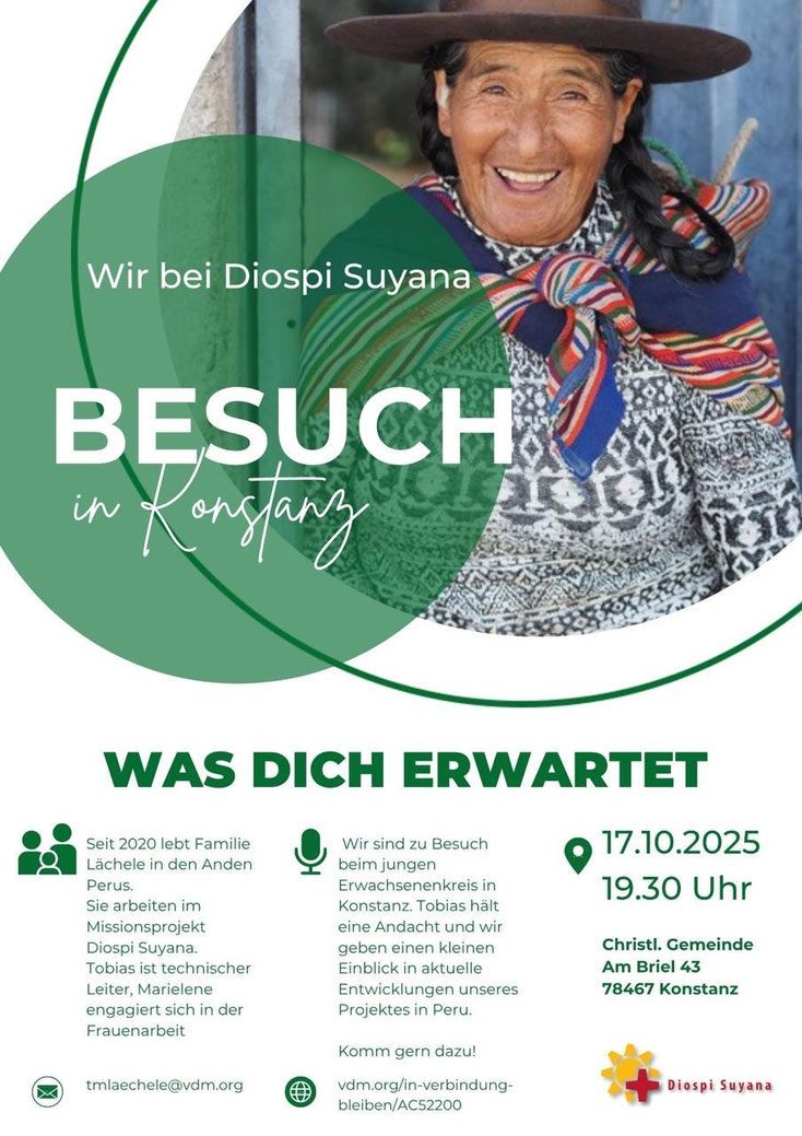 Wir treffen uns zum Gottesdienst abwechselnd um 10.00 Uhr oder 16.00 Uhr in der Friedenskirche, in den Räumen der EmK, Am Briel 43, 78467 Konstanz, siehe unser aktuelles Monatsprogramm.